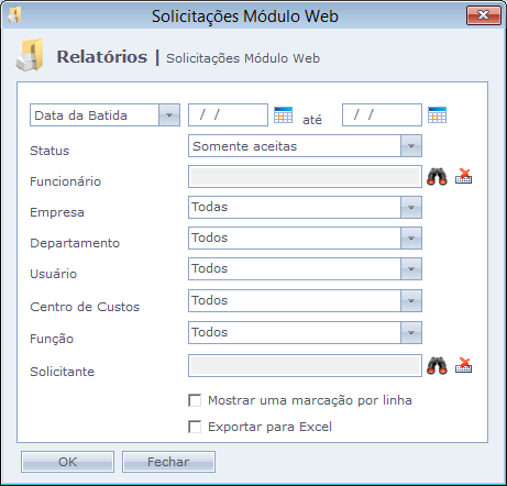 Data da Batida: Exibe as solicitações que tiveram batida dentro do período selecionado.
