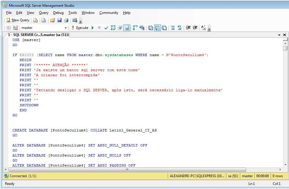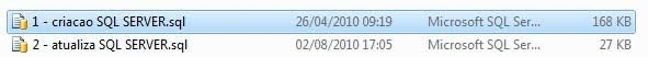 o Dentro da pasta 'SQL Server' há dois arquivos: '1 - criacao SQL Server' e '2 - atualiza SQL Server'. Abra o script numero 1, o de criação.
