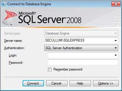 Aviso: Partimos do princípio que já tenha instalado o SQL Server 2008 no computador. Caso ainda não o tenha, é possível fazer a instalação automática pela opção Instalar o Microsoft SQL Server Express.