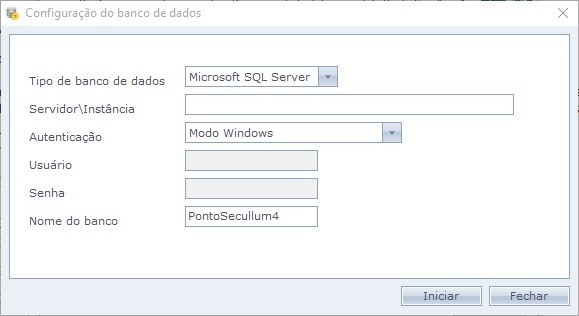 Nome de banco: Nome do banco de dados do sistema. Por padrão, é informado "PontoSecullum4", no entanto, é possível alterar o nome.