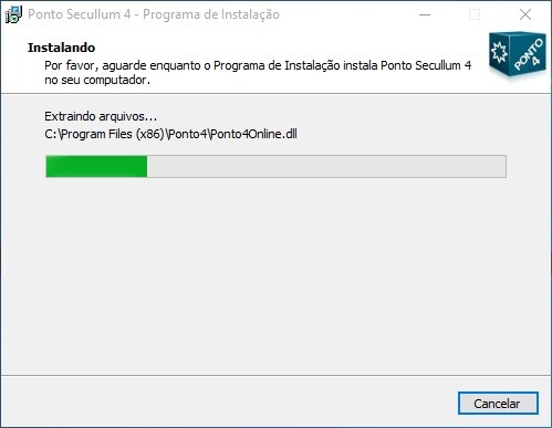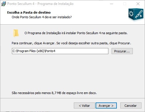 o Em seguida selecione a pasta de Destino. Recomenda-se utilizar 'C:\Arquivos de Programas\Ponto4\'.
