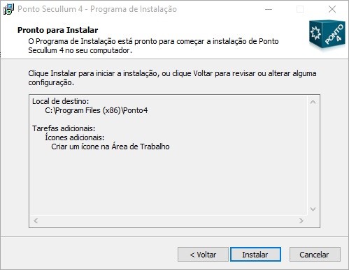 o Nesta tela o instalador informa que está pronto para iniciar a instalação, basta clicar em Instalar.